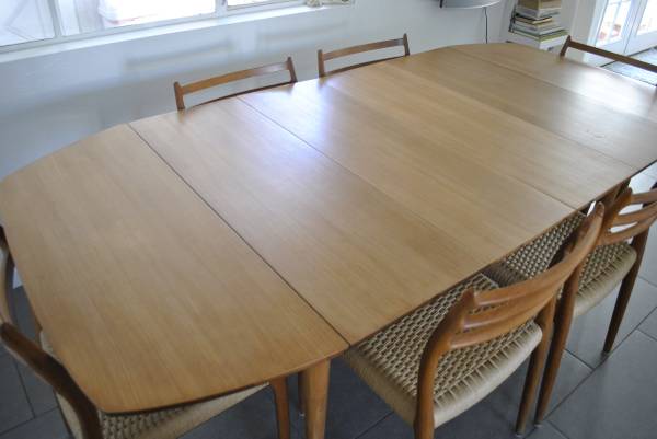 Dimensions: 79.5"L x 38"W with two leaf extensions. Two ends fold down as well. Smallest size is 26.5"L