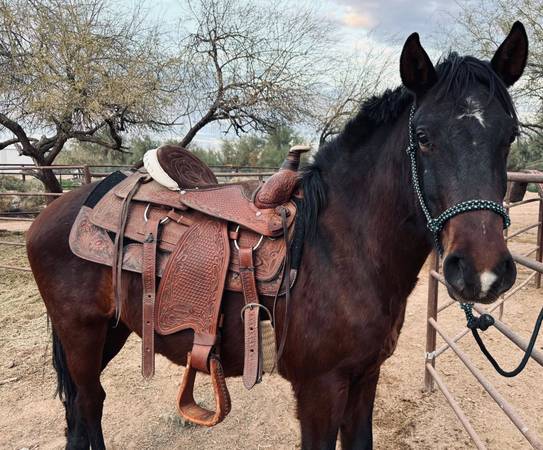 Hagrid is very friendly and easy to handle—you can touch him all over, and he gets along great with other horses. He’s smart, eager to learn, and wants to please. If you’re looking for a horse you can finish and train yourself, Hagrid is your guy!