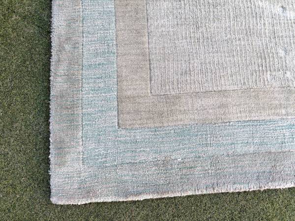Like New! Bought in March and it's time to mix it up again. I love rugs. Circle in center is from my dining room table, this is not a stain, and it will lift back up. The SAFAVIEH Impressions Collection is a translation of sophisticated designs combined with fashion forward colors. This ultra stylish modern collection a must-have in any decor. This rug features a hand-tufted modern design displaying a two-tone look and feel by using a raised pile and looped low pile.