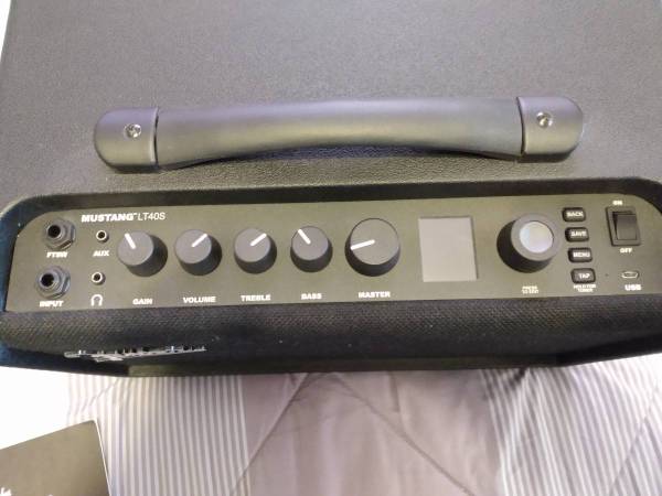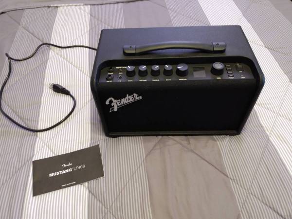 Mustang LT40S Modeling Amp. 40 watts, 2 - 4" full range speakers. 60 built in presets can be user modified, compatible with the Fender Tone App. Measures 14" long x 8" wide x 8" tall, weighs 12lbs.