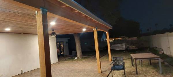 Our expertise goes beyond patios—we also offer electrical, plumbing, roofing, and stucco services to give you the perfect finished space. From LED recessed lighting and ceiling fans to unique texture designs, we create patios that are as comfortable as they are stylish.