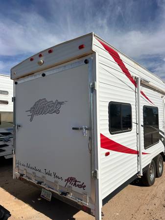 2013 eclipse attitude, been a great camper for the years I’ve owned it but unfortunately family is getting bigger and need more room. Everything works as well and bigger items replaced such as: front electric jack, new batteries, brand new tires from October of 2025, reupholstered couches and fresh coat of sealant on the roof. With this camper comes with the complete hitch set up and also champion inverter generator