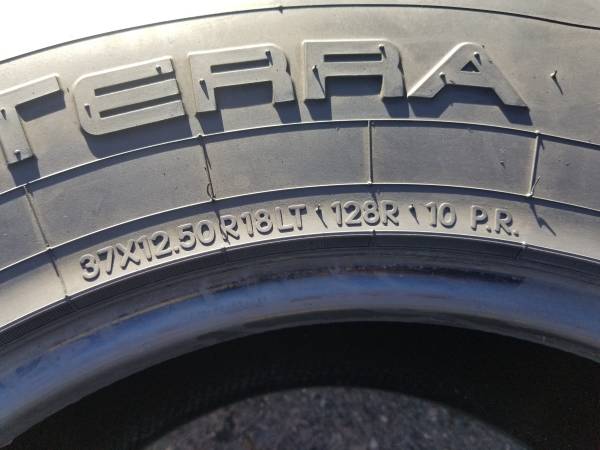 Have two used LT37x12.50R18 Nitto G2 Terra Grappler All Terrain 10ply Load Range E tires with 30% tread life left. $240 for the two tires put on your 18" rims mounted and balanced or pick up the two tires and take them with you for $180 cash. Please contact at show contact info