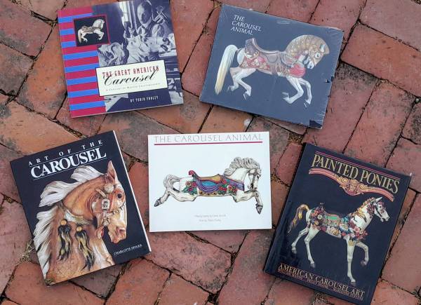 The collection also includes (5) carousel books ($150 value), carousel poster ($265 value), porcelain carousel figurine ($50 value), carousel music box ($65 value), all included in collection.