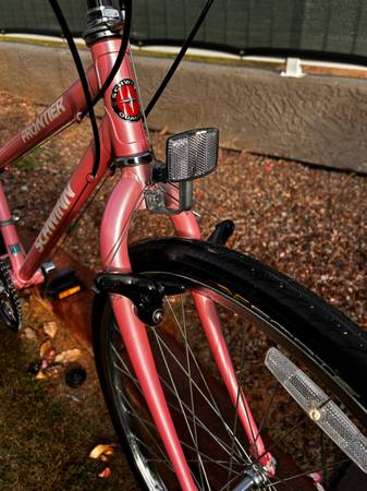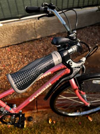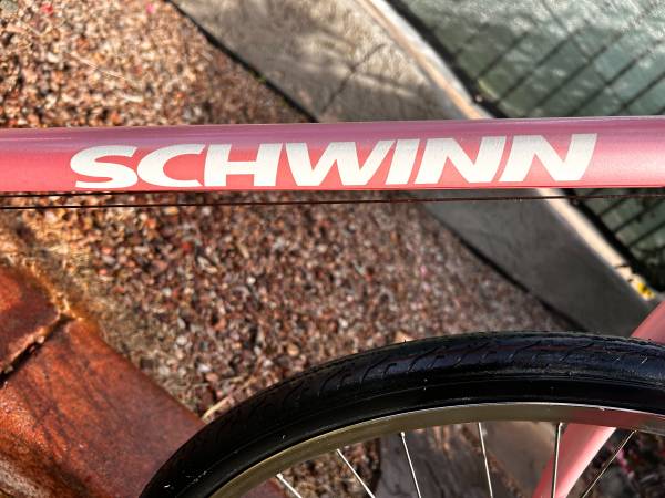 This is a 10-speed SCHWINN women’s comfort bike which has just been professionally refurbished and tuned-up. It has 10-speed SHIMANO “Indexed” Shift Levers and SHIMANO “Light Action” Derailleurs, SUGINO triple cranks, 26” wheels, and powerful PROSTAR Cantilever Brakes. Great for canal paths, dirt trails, and urban transportation as well. 19" frame fits average to tall riders. A long seatpost offers a wide range of adjustment.
