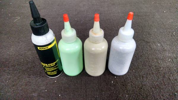 -OKO Magic Milk Hi Fibre. Synthetic latex, Long lasting, Water washable, never crystallizes like others. When it does dries out this sealant is unique in that an ounce of water will revive it. I have done this on the trail, just spitting water in through the stem. An impressive magic trick.