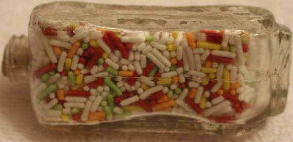 Selling one vintage glass candy tank with sprinkles inside.