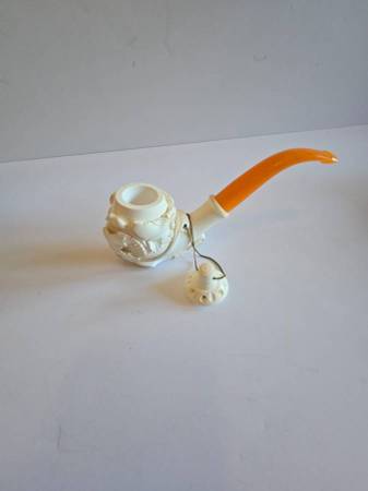 This is a beautiful Turkish Block Meershaum pipe with a chained lid. Incredible detail on this unique piece.
