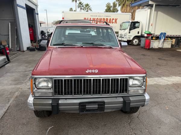 1992 JEEP CHEROKEE 4X4 LAREDO EDITION 4X4 HAS 6 CYLINDER ENGINE AUTOMATIC TRANSMISSION POWER STEERING POWER BRAKES POWER WINDOWS POWER DOOR LOCKS TILT STEERING WHEEL CRUISE CONTROL AM FM CD SOUND RECLINING BUCKET SEATS CENTER CONSOLE AIR CONDITIONING HAS 4 MATCHING GOODYEAR WRANGLER ALL SEASON RADIAL TIRES MOUNTED TO FACTORY LAREDO WHEELS HAS TOWING PACKAGE ROOF RACK AND YES 4 WHEEL DRIVE 4X4 OK WHEN I SAY ALL ORIGINAL I MEAN IT PAINT IS ALL ORIGINAL AS YOU CAN SEE IN PICS HAS NO RUST BODY VERY GOOD PAINT FINISH IS OLD I WOULD PAINT IT MAYBE BACK TO RED OR GO CAMO OR SATIN BLACK LOOK UNDER THE HOOD IT'S LIKE NEW ALL NEW HOSES ENGINE RUNS GREAT TRANSMISSION SHIFTS FINE ALL POWER OPTIONS WORK FINE ALL GLASS CRYSTAL CLEAR LOOK IT'S HARD TO FIND THESE CHEROKEES LET ALONE AN ALL ORIGINAL ONE HAS CLEAN CLEAR TITLE NICE 4X4 HECK WHY BUY A RAZOR TRICK THS ONE OUT ADD A LIFT SOME BIGGER TIRES A ROOF RACK LIGHT BAR YOU GET THE IDEA