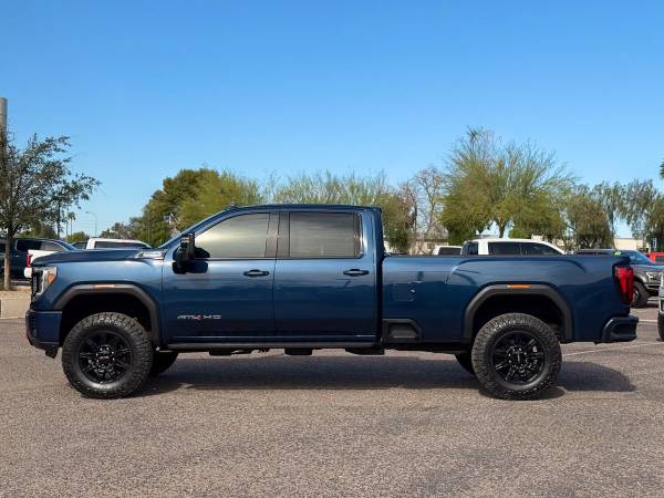 Check out this hard to find, clean 2022 GMC Sierra 2500HD AT4 Edition Crew Cab Long Bed 4x4 that brings serious presence the moment you see it. The long bed setup adds real usefulness, making this truck a great choice for towing, hauling, or everyday work without giving up style.Presenting an AT4 finished in eye-catching Dynamic Blue Metallic, this Sierra stands out with sharp gloss black exterior accents that give it a bold and modern look. The color combination works perfectly with the aggressive AT4 design and gives this truck a clean, high-end appearance from every angle.Are you looking for a truck to conquer your needs while keeping comfort front and center? Step inside and you’ll find the Jet Black interior with Kalahari accents, exclusive to the AT4 edition. The cabin feels upscale and tough at the same time, built to handle long drives and hard days with ease.Under the hood sits the proven 6.6 liter Duramax V8 turbo diesel engine paired with the smooth Allison 10-speed automatic transmission. This setup delivers strong pulling power, steady acceleration, and confident performance whether you’re towing heavy loads or cruising down the highway.Built to sit just right, this long bed AT4 features a brand new set of 37x11.50R20 Nitto Ridge Grappler tires mounted on gloss black GMC AT4 wheels. A 3-inch Rough Country upper control arm kit gives this truck a strong stance while keeping ride quality dialed in for daily driving.Performance features include an auto locking rear differential, two-speed Autotrac transfer case, traction select system with off-road and tow/haul modes, heavy-duty air cleaner, skid plates, and X31 off-road suspension with Rancho shocks. Digital variable steering assist and trailer sway control help keep everything smooth and controlled.Trailering is handled with ease thanks to the full trailering package, integrated trailer brake controller, ProGrade trailering system, and a 220 amp alternator. The long bed adds even more flexibility for equipment, trailers, or weekend projects that need extra space.Inside, technology keeps you connected with the GMC premium infotainment system featuring an 8-inch touchscreen, Bluetooth audio streaming, wireless Apple CarPlay, wireless Android Auto, SiriusXM capability, USB ports, color driver info center, keyless open and start, remote start, and rear seat reminder.Comfort features include dual zone climate control, 10-way power front bucket seats, driver seat and mirror memory, leather-wrapped steering wheel, premium floor liners, and a spacious rear seat with a 60/40 folding bench and added storage for gear or tools.This clean 2022 GMC Sierra 2500HD AT4 Edition long bed is fully serviced, ready to tow or haul, and ready for its next owner. Unique Trucks offers no obligation delivery right to your doorstep, test drives from home, easy phone deals, and we love trade-ins, so come check out our trucks and lifted trucks and see what sets this one apart. __________________________________________________________ 2022*2023*2021* GMC* SIERRA* 2500HD* 2500* DIESEL TRUCKS* DURAMAX* AT4 EDITION* CREW* CREW CAB* DIESEL* 4X4* FOUR WHEEL DRIVE* 4WD* DIESEL TRUCKS* DURAMAX* ALLISON TRANSMISSION* LONG BED* AT4 EDITION* CREW* DIESEL TRUCKS* GMC TRUCKS* LONG BED* AT4* LOW MILES* LOW MILEAGE* LIFTED GMC* LIFTED SIERRA* LIFTED TRUCKS* GMC TRUCKS* LIFTED SIERRA* RELIABLE* ONLY*