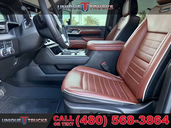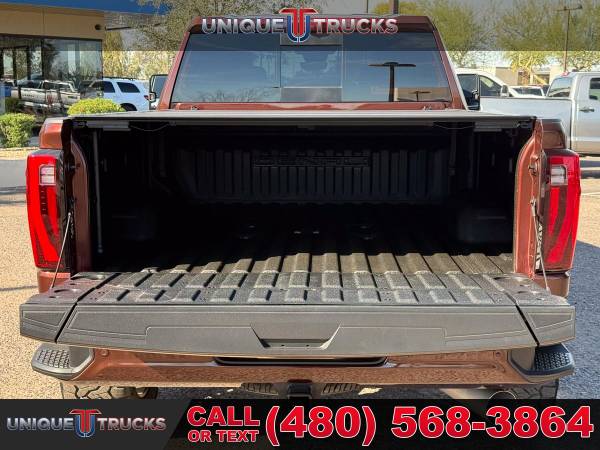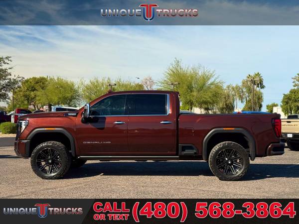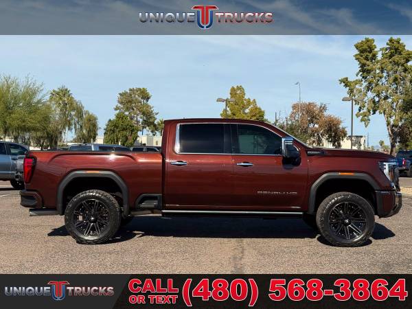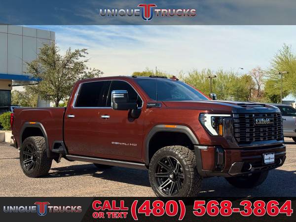 This lifted 2024 GMC Sierra 2500HD Denali Ultimate is a true head turner, finished in the rare and eye catching Redwood Metallic paint. The deep color shines in the light and sets this truck apart right away, giving it a bold look that stands out anywhere it goes.Inside, the Denali Ultimate Alpine Umber leather interior feels rich and clean with a sharp layout that matches the outside style. The cabin is quiet, comfortable, and built for long drives, with premium materials and a layout that feels well thought out from front to back.This Sierra sits strong on custom 22 inch gloss black wheels wrapped in Nitto Recon Grappler all terrain tires. The wheel and tire setup gives the truck the perfect stance while still keeping a smooth ride and solid grip for daily driving or rough roads.Power comes from the proven 6.6 liter Duramax turbo diesel V8 paired with the smooth Allison 10 speed automatic transmission. This setup is built to tow and haul with ease, giving you steady power, smooth shifts, and confidence behind the wheel.The Redwood Metallic exterior really makes this Denali Ultimate pop, especially paired with the chrome accents, animated LED headlamps, roof marker lamps, and the GMC MultiPro tailgate. Every detail works together to give this truck a clean and high end look.Safety features are loaded, including forward collision alert, front pedestrian braking, automatic emergency braking, lane departure warning, rear cross traffic alert, trailer side blind zone alert, front and rear park assist, HD surround vision, and a safety alert seat to help keep you aware on every drive.This truck is ready for work with an auto locking rear differential, two speed Autotrac transfer case, trailer brake controller, full trailering package, vehicle trailering app, and hill start assist. Everything is set up to make towing and hauling easier and more controlled.Technology is front and center with the premium GMC infotainment system, large 13.4 inch touchscreen, built in navigation, wireless Apple CarPlay, wireless Android Auto, SiriusXM trial, Bose premium sound system, digital driver display, bed view camera, wireless charging, remote start, and keyless open and start.Comfort is just as strong with 16 way power front bucket seats, heated and cooled front seats, heated rear seats, memory settings, a leather wrapped steering wheel, power assist steps, power folding tow mirrors, spray in bedliner, LED cargo lighting, and a power rear sliding window.At Unique Trucks, the price you see is the price you pay with no hidden markups or addendums. We offer no obligation delivery right to your doorstep so you can test drive from home, make your best deal over the phone, and walk away if it is not the right fit. We love trade ins and invite you to come in and check out this Denali Ultimate for yourself. __________________________________________________________________________________________________________________ 2024* 2025* 2026* GMC* SIERRA* 2500HD* 2500* DURAMAX* ULTIMATE* DENALI* LIFTED* GMC TRUCKS* SIERRA* GMC TRUCKS* LIFTED TRUCKS* SIERRA* ULTIMATE EDITION* DURAMAX* DIESEL* ALLISON TRANSMISSION* DENALI* CREW* CREW CAB* DIESEL TRUCKS* LOW MILES* LOW MILEAGE* RELIABLE* ONLY*