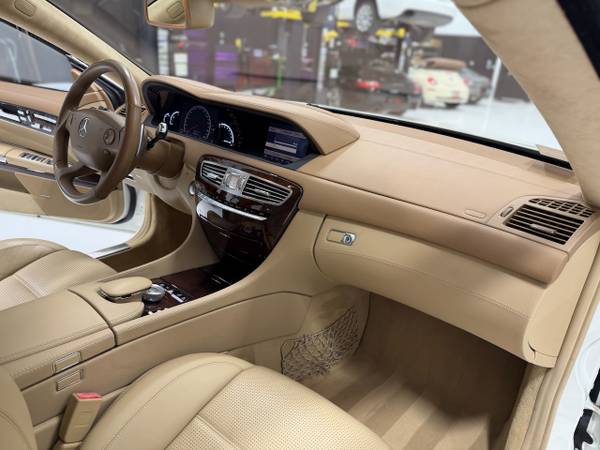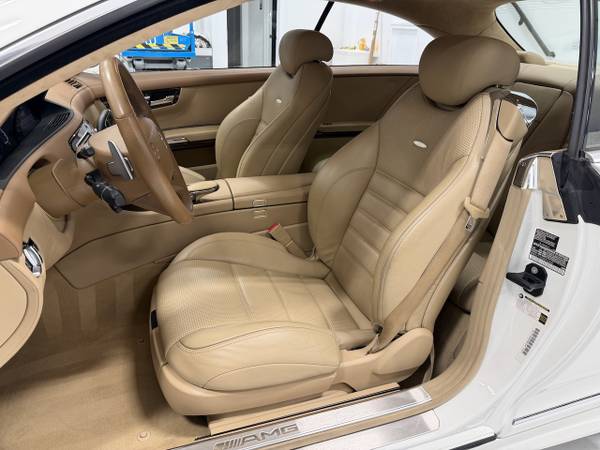 This 2008 Mercedes CL63 is finished in Calcite White over Cashmere and Savannah Beige leather interior. Power is provided by a naturally aspirated 6.2 liter V8 engine driving the rear wheels through an 7-speed automatic transmission.