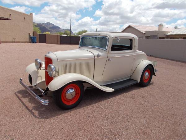 1932 Ford 3 Window Coupe, (All Henry Steel) (This is a UN - Chopped Car, Un - Filled Top, With original working cowl vent). was built by Randy Clark, at Hot Rods and Custom Stuff in Escondido Ca. ..
