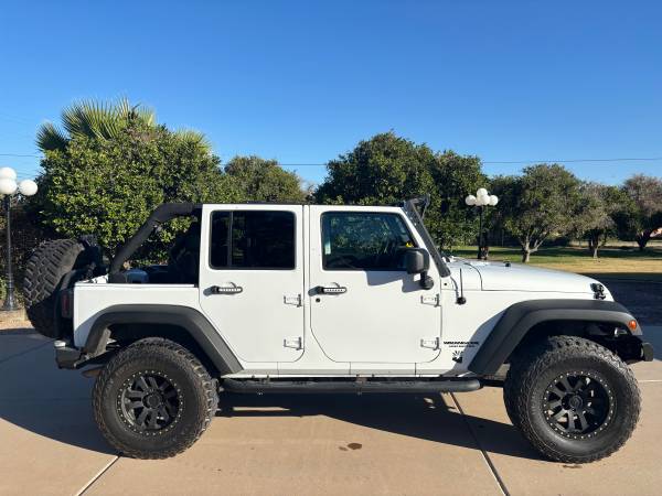Low Low miles on this 2012 lifted Jeep Wrangler which has been meticulously maintained and cared for. No issues whatsoever so ever! Only 91,850 miles and has much more to give with nothing but synthetic oil changes. After market upgrades with steel front and rear bumper and sway bar. Cruise, ice cold A/C, power windows-mirrors-door locks, premium sound system, light bar, 17” Mickey Thompson tires, Bilstein shocks, new steering stabilizer, new canvas top and has a hard top not pictured so you can enjoy the weather. Just serviced with a full ceramic wax service. I have three Wranglers and scaling down. Carfax available and have an extended warranty that is transferable to the new owner with No Sales Tax! Just in time for the Holidays and the Arizona winter!