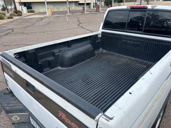 Selling my Nissan frontier only has 154,000 original miles, four-cylinder, 5 speed cold AC, clean regular title, emissions until 2027, brand new shocks, inner and outwr tie rods, new spark plug wires, spark plug cap rotor, tires almost new condition with custom rims, Window Tint and runs great with no leaks at all. Needs cosmetic work like paint job and some minor body work and interior in decent shape for its age. Would make a great work truck asking $3900 or best offer text would be best at show contact info