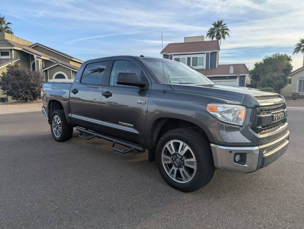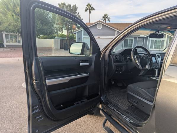 2017 Toyota Tundra SR5, TRD Off-Road Package, Crew Max, 5.7L V8 4WD, Magnetic Gray, 109,058 miles. Clean title. Clean Carfax. 5 1/2FT bed with Tonneau Cover. Towing Hitch. Power Windows & Locks, Power Adjustable Driver's Seat, Sliding Rear Window, Sun/Moon Roof, Heated Front Seats, Trailer Brake Controller, Engine Block Heater. Interior is in fantastic condition. No mechanical or interior issues. No major exterior damage or defects. VIN available on request.