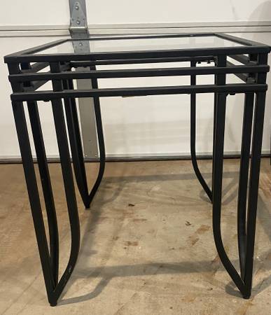 -Two black and glass coffee tables