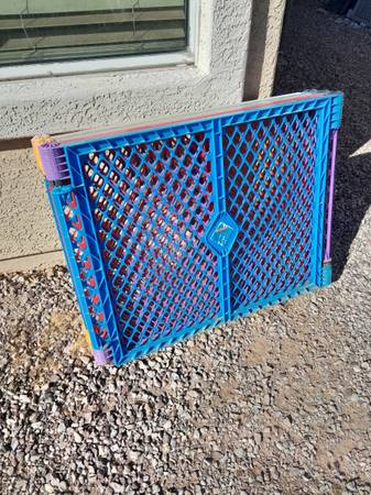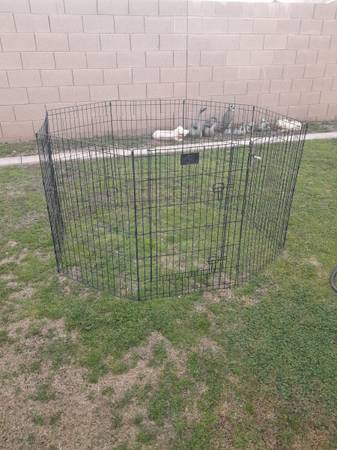 3 different pet enclosures, priced individually. Buy 1 or as many as you need. 6 PANEL MULTICOLORED PLASTIC PET FENCING ENCLOSURE (photos 2-3). Each panel Measures 32" wide x 26" tall and overall is 17 linear ft long. Foldable for easy transport and storage. Lowered to $30. 6 PANEL GRAY PLASTIC PET FENCING ENCLOSURE (photos 4-5). Each panel Measures 32" wide x 26" tall and overall is 17 linear ft long. Foldable for easy transport and storage. Lowered to $35. 8 PANEL BLACK METAL WIRE PET FENCING ENCLOSURE with door (photos 6-10). Each panel Measures 24" wide x 36" tall and overall is 16 linear ft long. Foldable for easy transport and storage. 1 of the panels has a cutout that was used for a doghouse. Including an extra wire panel that you can use to close off hole. See photos. Lowered to $35. Pickup anytime today. Located off Ray, between power and recker, in Gilbert. Reply above Text only. No emails.