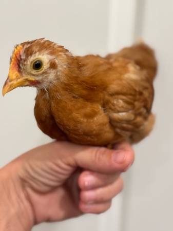 6 weeks old, almost fully feathered, ready for their new coop. Pullets $15, Cockerels $5