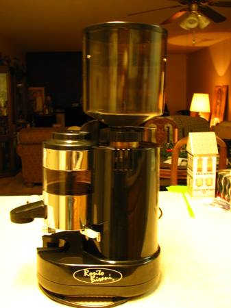 Rosito Bisani Espresso RR45 coffee grinder, Made in Italy, in very good working condition, has some cosmetic problems but still looks good. Grinder and dosser were completely disassembled and thoroughly cleaned. I spent hours cleaning this machine, there are no coffee grinds anywhere. Super clean. Everything works the way it should. This thing is heavy duty. Ready to use. $275.00 cash.