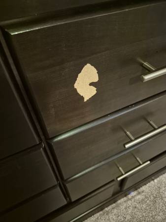 Fair condition, with a few scratches, including a good-sized one on a drawer.