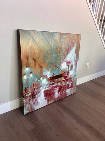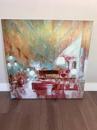 40x40 EXTRA LARGE Z Gallerie Piano Bar Canvas Wall Art Wall Decor Artwork. Perfect condition large canvas wall Art, Artwork, wall decor! I have so many wall pictures for sale. 40x40 EXTRA LARGE Z Gallerie Canvas of Piano Bar. Multicolored Wall Decor Wall Art Wall Decor Artwork. It’s such a stunning design how the lights actually look like lights glowing in the picture! In perfect condition. Originally cost $399 at ZGallerie!!