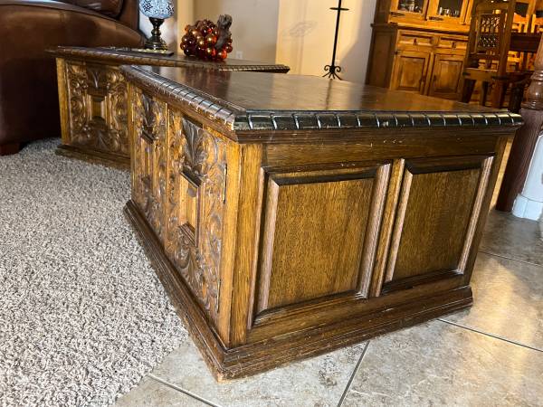 I have a low profile, solid wood, intricately carved coffee table with 2 matching end tables. $1300