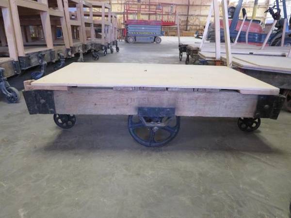 Factory carts were manufactured in the early 1900's by the Lineberry Foundry and Machine Company in North Wilkesboro, North Carolina. Often called railroad carts, these carts were originally used in railroad depots for transporting trunks, and later utilized in furniture factories for moving large pieces