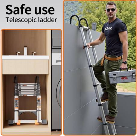 Reliable Load Capacity: The telescoping ladder can hold up to 330 lbs; great ladder for a variety of scenarios; Ideal for home cleaning,renovation,gardening,professional tasks,rv ladder,attic ladder,This telescoping ladder will bring great convenience to your life