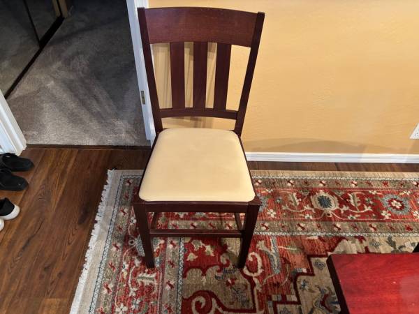 Dining room table and 6 chairs Cherrywood finish 38x60x30 height Additional 20 inch leaf Very good condition $195 cash only Thanks for looking Mark
