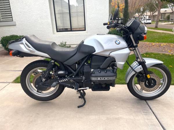 Super clean 1995 BMW K75 in great running condition with a clean AZ title. LAST YEAR MADE. 17295 miles. Starts right up and idles perfectly. Known for their nimbleness yet still powerful, it’s a blast to ride. Awesome sport touring model. Set up with a naked look right now, but has the original bags, brackets, and license plate holder. Brand new tires with the whiskers still on them. Brand new high performance battery. Upgraded Staintune exhaust. Original comes with the bike. Just serviced with all records. Has the factory hard saddlebags as seen in pics. Comes with owners manual as well as service manual. Just get on and ride! No trades, lowballers, timewasters, tirekickers or offers without seeing in person. $2650. Cash deal. No free rides-cash in hand for test drive. No emails or texts please. Four 8O threeto 3 sixO eight9. Calls only.