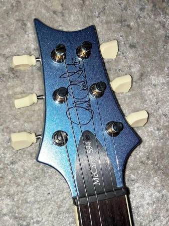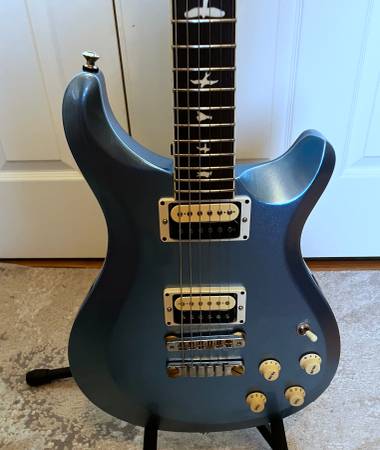 Like new USA made PRS S2 McCarty 594 Thinline in frost blue metallic. Upgraded with PRS locking tuners, set of the new Seymour Duncan Slash 2.0 pickups, Straploks, cream knobs/switch tip, & Elixir strings.
