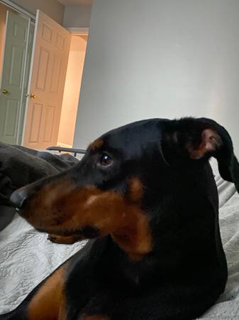Need to rehome a female Doberman 2 yrs old, fixed, friendly and free. She will come with leash, collars, bowl, bones and her shot/ spay records. Text 480329224two.