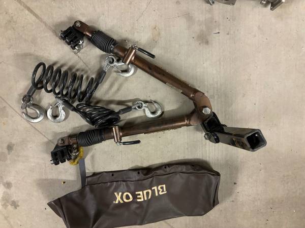 Like New Barely Used Blue Ox BX7420 10,000lb RV Tow Bar Set with Heavy Duty Safety Cables. Ready to slide into your receiver and tow your vehicle safely. $975.00 Call