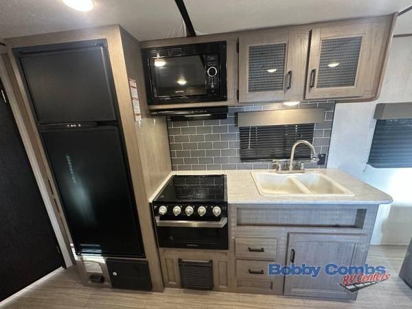 Do you like the flexibility of having a front living area or front bedroom, plus a set of bunks? Then look no further than this Hideout travel trailer by Keystone. Depending on the time of day that you enter this model will determine if you see the jackknife sofa or the Murphy bed set up. Your kids or guests will enjoy the rear double-size bunks, and they will find it convenient to have the full bathroom located right next to them. The central vacuum will certainly be helpful for cleaning up any stray messes that happen along the way. For any trip, whether near or far, you will want a Hideout fifth wheel, travel trailer, destination trailer, or toy hauler by Keystone RV. These models are lightweight which makes them easy to hook up and tow. Just load up your belongings and head out for a weekend away in your own Hideout retreat. A few key features inside of each model include: blackout night shades, a central vacuum, and a Furrion Bluetooth radio, and the exterior is just as accommodating with its blue LED-lighted exterior speakers, fully walkable roof, Tru-fit™ slide construction, and the power awning. Don't wait any longer to enjoy your own private hideout with the Keystone Hideout!