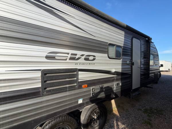 2022 forest river evo travel trailer. 31ft. 1 super slide. automatic awning. Brand new tire's. bunk beds. And queen size walk around bed as well. Full bathroom. full kitchen. Sofa that turns into bed as well. Dinette. Fully self-contained sleeps 8 CLEAN AZ TITLE IN HAND.