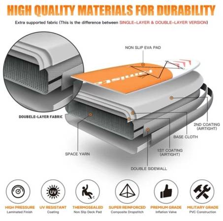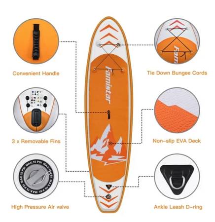 Famistar board features durable top foam and a non-slip grip. It is ideal for beginners for adults and also professional athletes. With its length and proportion, the board can provide excellent glide for fishing, cruising, exploring, and fitness. The 6 inches in thickness allows heavier riders to enjoy this fun paddling sport. With this excellent flat-water cruising board, users can enjoy a wonderful surfing experience. Extra wide for Better Balance: Measuring 11.8 feet long and 30 inches wide, balancing and stabilizing on top of our sup board is a breeze