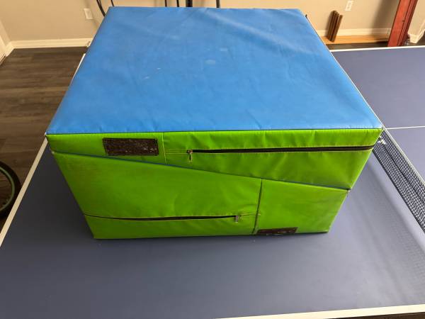 Folding gymnastics mat. Used, but still in really good condition, no damage to fabric. 29w x 17h x 38L