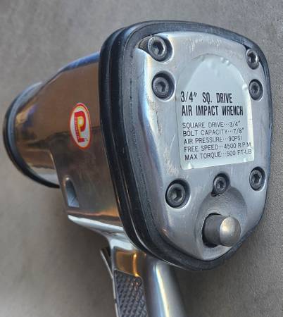Pneumatic (air) impact wrench with 3/4 inch square drive, forward and reverse directions, includes Proto Professional 11 piece socket set, like new condition, offered all together for $80.00