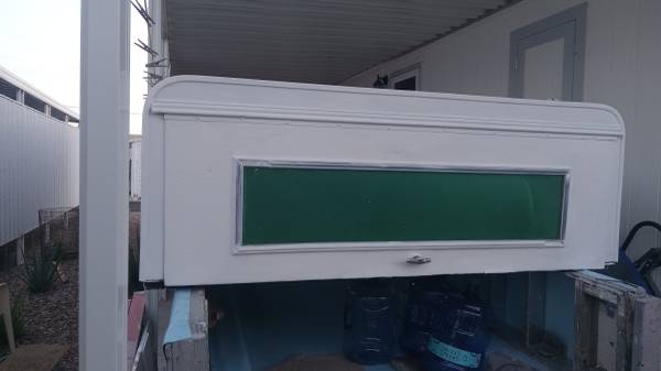 Aluminum camper topper 6 ft x 8 ft in good condition. Has 2x6s attached to the bottom so it's versatile fit. I was going to build out my trailer with it it's just too big. I need one off of S10 or Dakota small truck . will trade. Call or text only located in Apache Junction across from the post office thank you. It's freshly painted and waterproof
