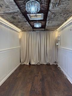 2013 Single-Axle V-Nose Diamond Cargo Enclosed Trailer. Retro fitted to a mobile studio. It has a Dial ductless AC unit to keep your temperatures perfect regardless of what type of weather your market is in. Laminate plank flooring, beadboard siding, vintage metal tiles on the ceiling with 2 chandeliers and strip light for extra brightness, it has 2 electrical outlets and is equipped with running water using an RV pump/tank set with approximately a 4 gallon tank. It is super easy to maneuver and accepted into most markets due to its compact size.