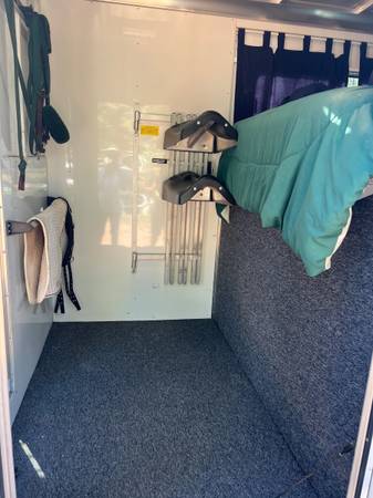 EXCELLENT CONDITION! And ready for Christmas present. Warm blood height 7.6’ Tack room w/bed, pass thru for loading, floor, mats, carpet is like new! Ramp, divider, feed bags, saddle racks, new tires w/covers. TLC care from owner.NEW SELLING FOR $42,000. Latest sales at dealerships $15,000! Low mileage. Price 13,000.00