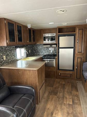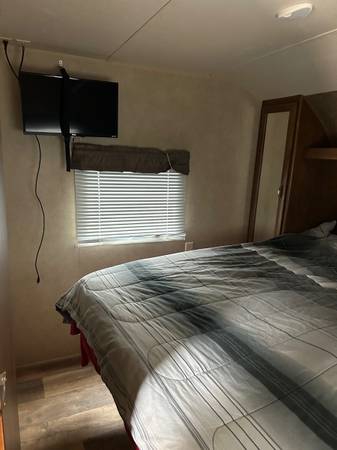 One large kitchen slide out. All elections work. No leaks. Two TVs, dvd player, surround sound. Inside /outside speakers. electric outriggers and electric rollout awning with LED lights. Weight...