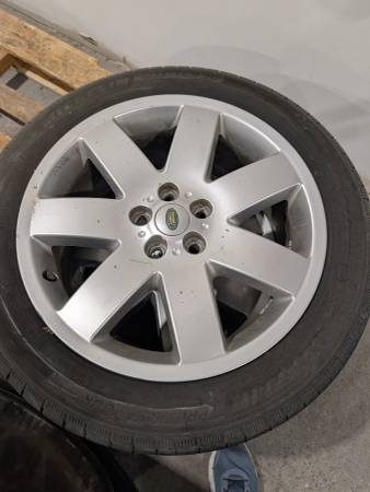 Four OEM wheels from a 2008 Range Rover HSE. 5x120 bolt pattern. Good condition, no cracks or bends. Three of the wheels have tires with average tread, mismatched brand. Would recommend new tires for all four. These were takeoffs from one of my cars as I went with a different size. I sold that vehicle and no longer need these. Local pickup in Tempe.