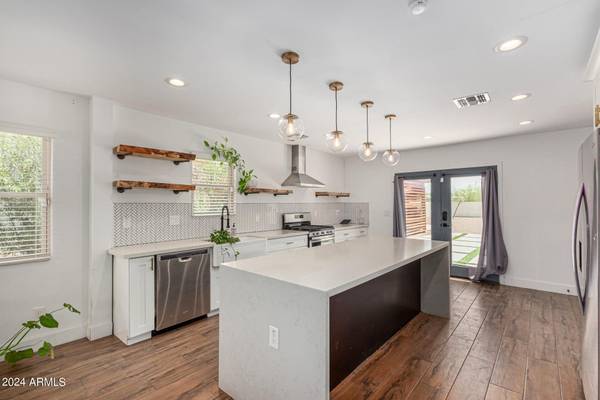 Lease to Purchase this is a 3-bed, 2 bath that was beautifully remodeled in 2018. This property is offering gated carport parking and a well-manicured desert landscaped yard. Inside, you are greeted with the great room with neutral paint, wood-look tile floors, window treatments, French doors to the patio, recessed lighting. Tons of natural light are some features you'll love. Open-concept kitchen has SS appliances, solid-surface counters, herringbone tile backsplash, shaker cabinets with crown molding, and an island with pendant lighting over the breakfast bar. Large main bedroom has a barn door that opens to the spotless ensuite w/dual sinks. Enjoy relaxing or entertaining in the spacious backyard with cozy seating areas!