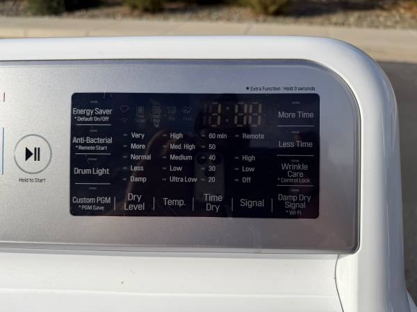 LG 7.4. Cu Ft “Electric” Dryer with Sensor Dry Technology in Excellent Condition, Heavy Duty, Extra Large Capacity, The Dryer has a Digital Touchscreen, The Dryer has been Serviced meaning The Dryer has been taken apart cleaned of all Lint and debris, The Idler Arm, Tumbler Wheels and Glide Pads have been cleaned and lubricated so The Dryer is Very Quiet while It Rotates and has Great Heat, When you look at the Last Picture you can see how The Dryer Looks Like after it’s been Fully Serviced, I will Demonstrate for you that The Dryer works properly, The Dryer works perfect..