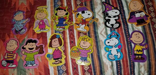 HAD THESE IN STORAGE IF YOU LOVE SNOOPY THIS WOULD BE A GREAT ADDITION TO YOUR COLLECTION TOO THIS IS NEW NEVER USED NEVER USED BEEN STORED AWAY VERY CUTE VERY COLORFUL IS NICE TO ADD TO YOUR GROWING PEANUTS SNOOPY COLLECTIONS SERIOUS BUYERS, ASK QUESTIONS NON-SMOKING HOME - NO KIDS