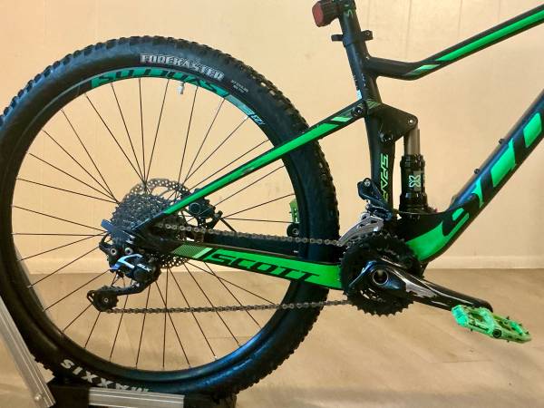 Fast, efficient, and fun—Scott’s Spark 760 is your bike for cross country riding nirvana. Its hydroformed aluminum frame accelerates with ease and loves to eat up singletrack. RockShox’s plush 120mm fork and the X-Fusion shock tame rough terrain while maintaining plenty of efficiency. Quick-rolling, 27.5-inch Syncros wheels spin easy to keep your momentum high, while tacky Maxxis tires dig into terra firma. Plus, you’ll love the crisp-shifting, 20-speed Shimano drivetrain and powerful Shimano disc brakes for miles of off-road