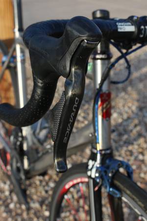 Nice Lynskey Helix titanium road bike. Twisted main tubes make for a stiff and cool looking ride. It has a 56.5cm effective top tube and 54cm center of bb to top of seat tube. The titanium gives it the smooth, comfortable ride that will last a lifetime. It is equipped with Shimano Dura Ace DI2 shifting, light weight Fulcrum wheels, Zero Gravity brakes, and many other high end light weight components.