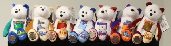 State Quarter Coin Bears Have Acrylic Cases as well - $15 each Sacagawea & Baby Pomp Dollar Coin - $15 All 10 Large State Coin Bears with 5 gold plated quarters from each year - $200